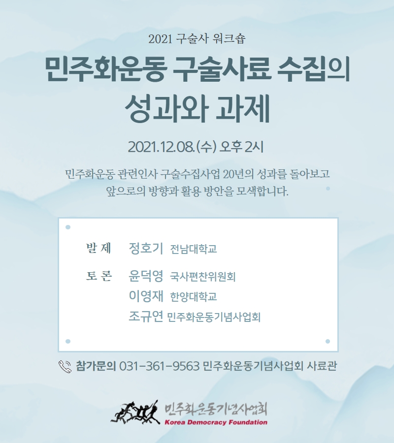 2021 구술사 워크숍 <민주화운동 구술사료 수집의 성과와 과제>