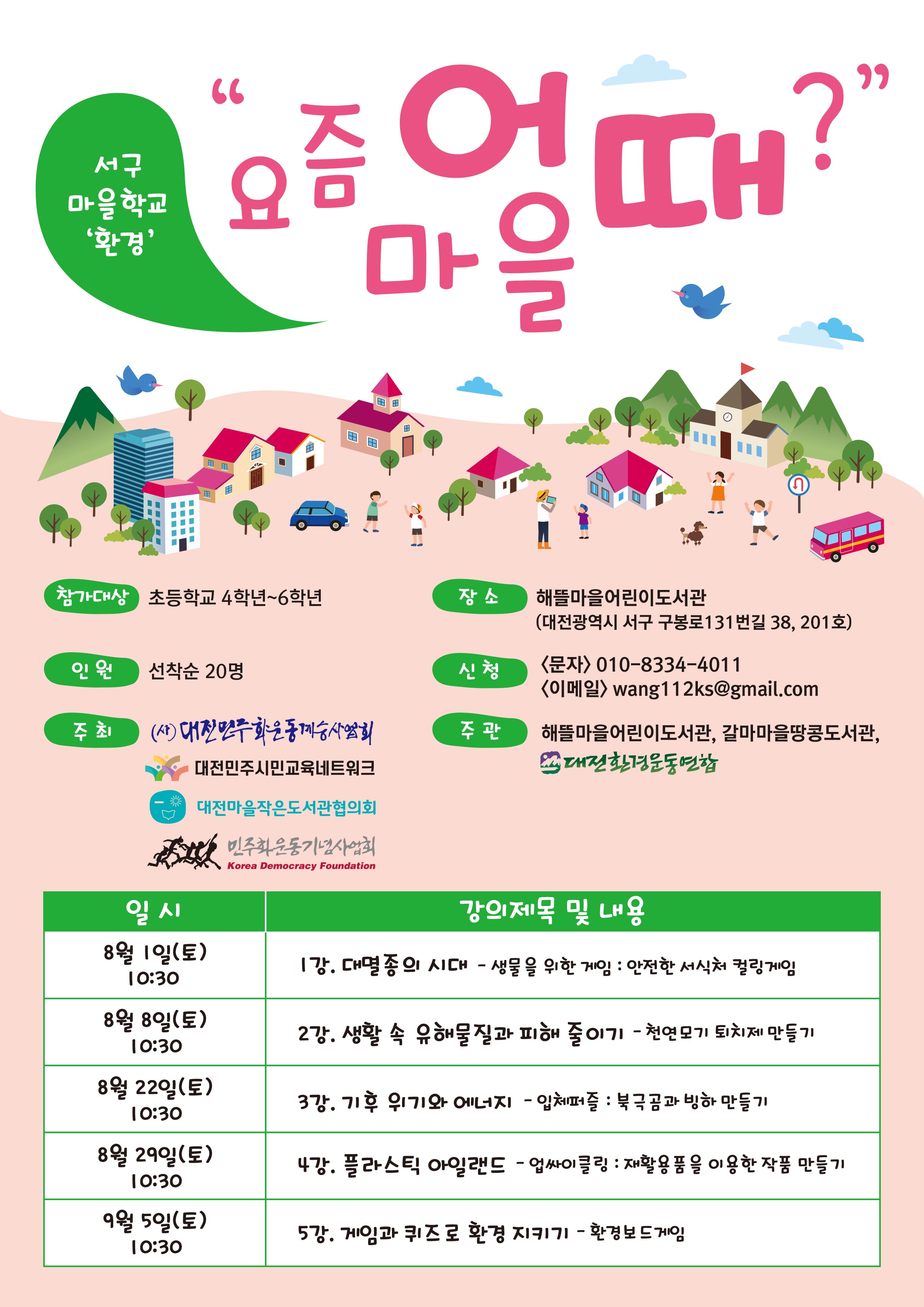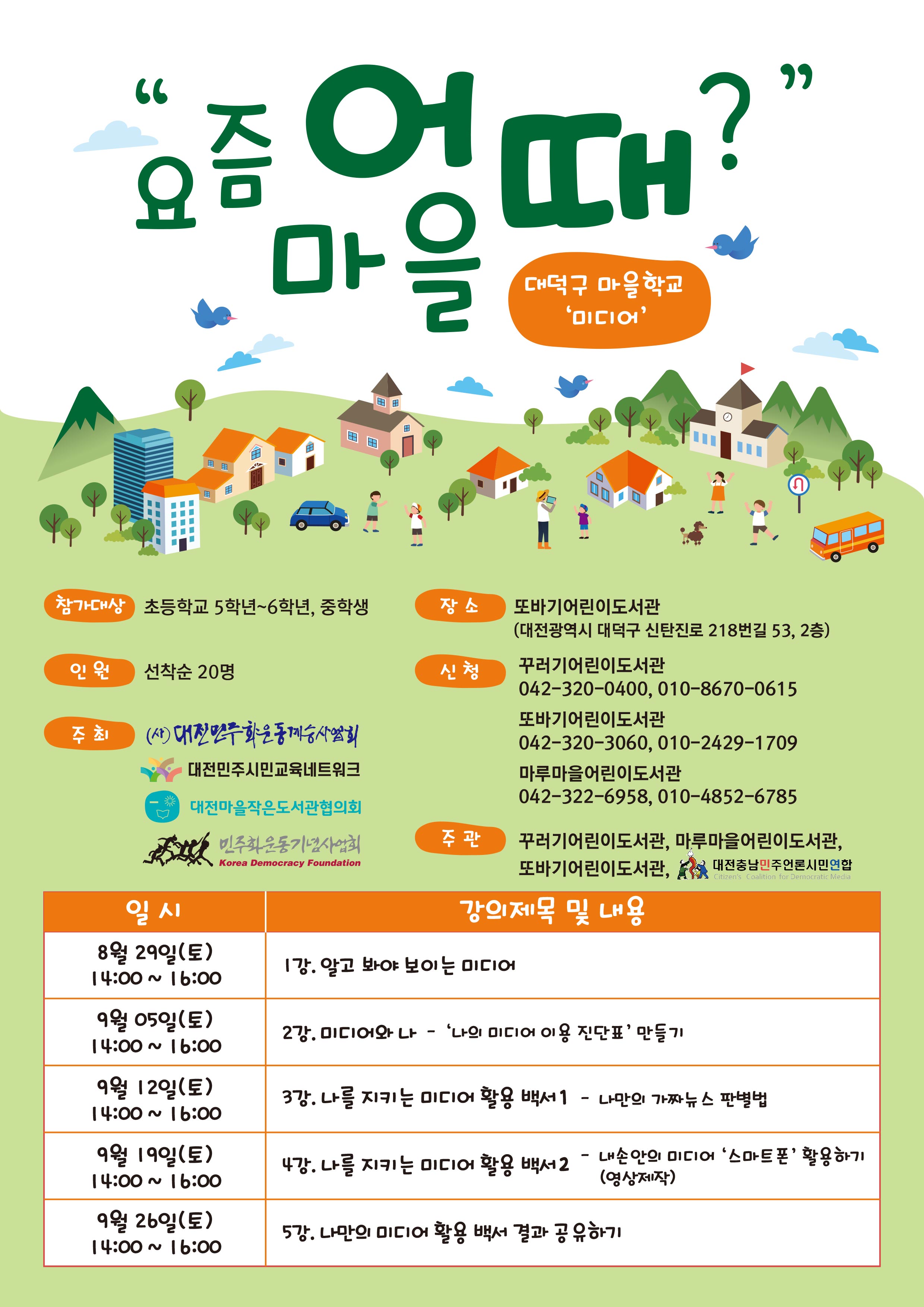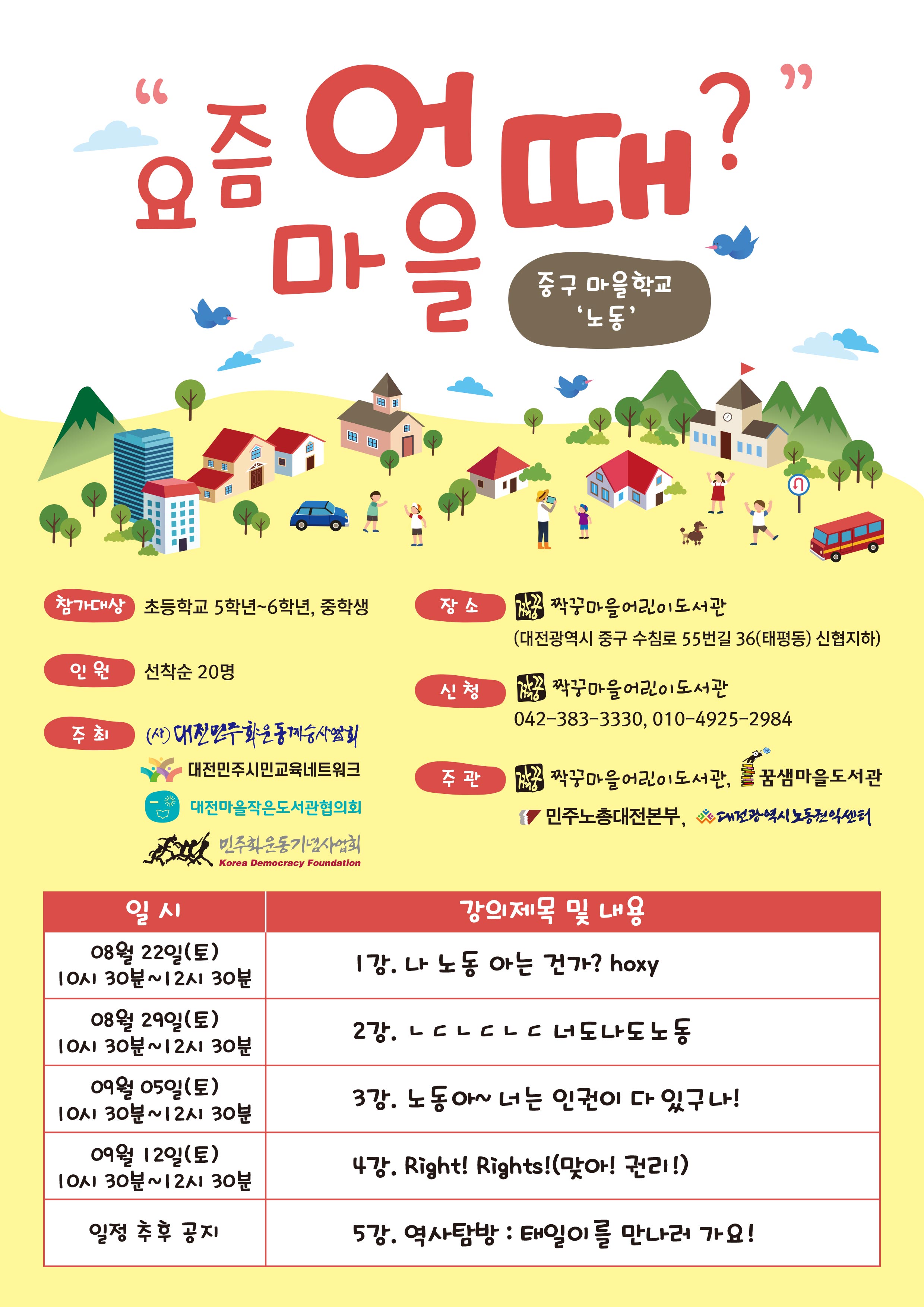 ○ 내용(강의명) : 서구 마을학교-환경 / 중구 마을학교-노동 / 대덕구 마을학교-미디어