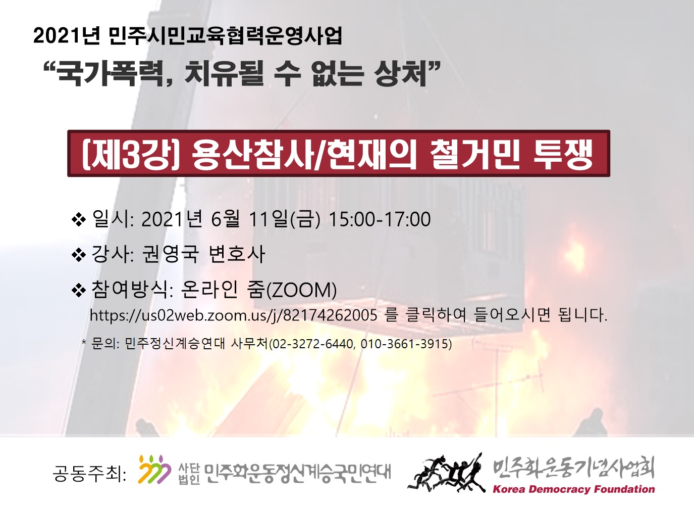 ○ 내용(강의명) : (3강) 용산참사/현재의 철거민 투쟁