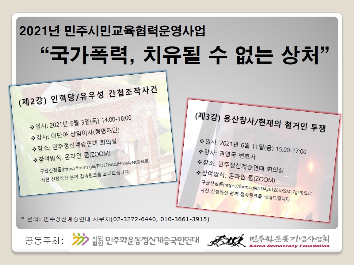 민주정신계승연대 회의실, 온라인(사전 신청자에 한해서 접속링크 전송)