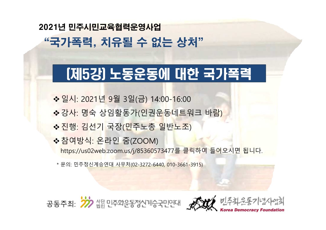 ○ 내용(강의명) :국가폭력, 치유될 수 없는 상처_(5강) 노동운동에 대한 국가폭력
