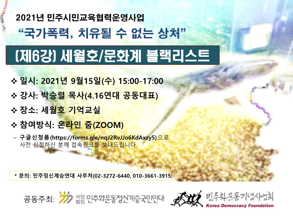 ○ 내용(강의명) :국가폭력, 치유될 수 없는 상처_(6강) 세월호/문화계 블랙리스트