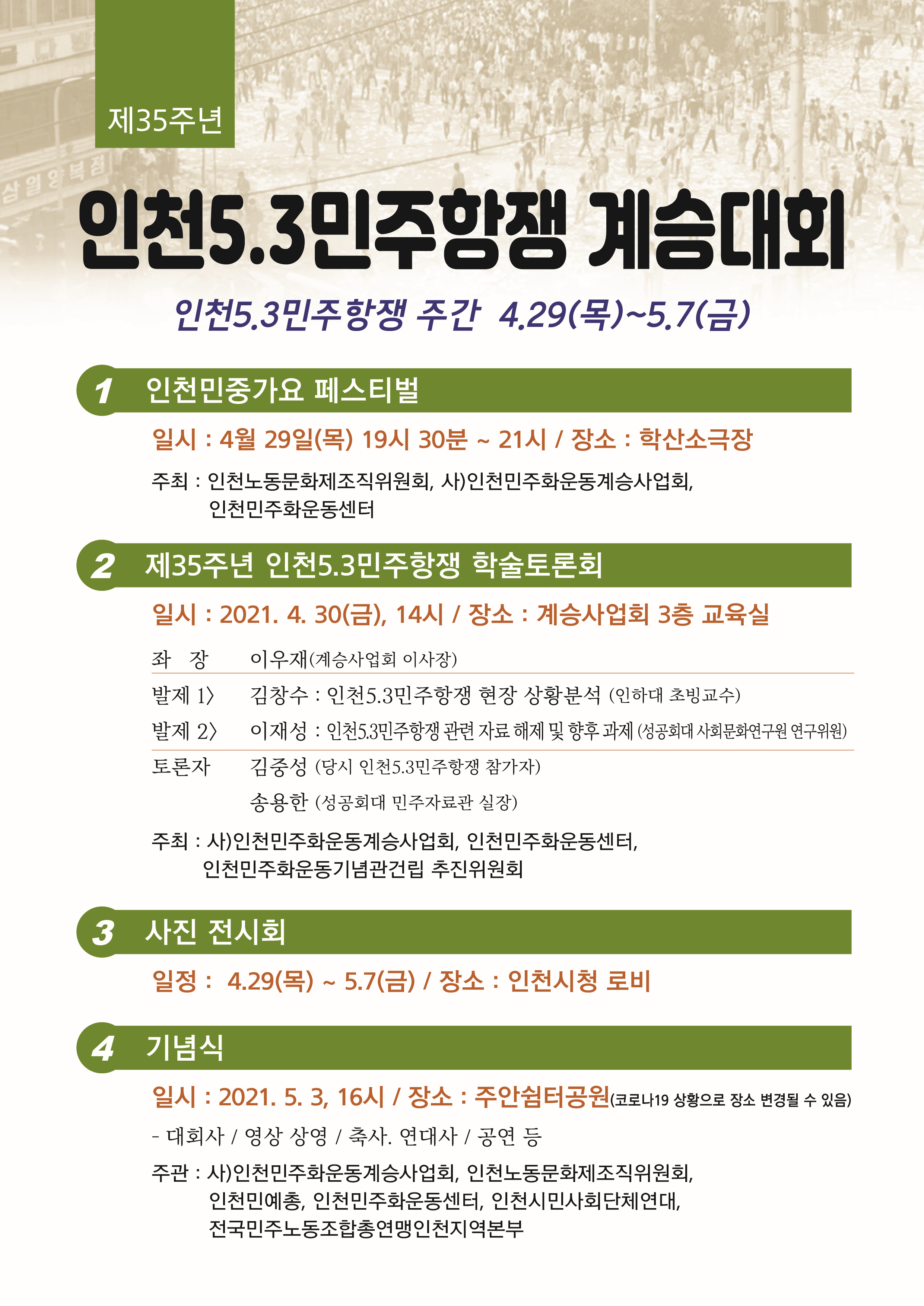 인천5·3민주항쟁 주간: 4.29.(목)~5.7.(금)