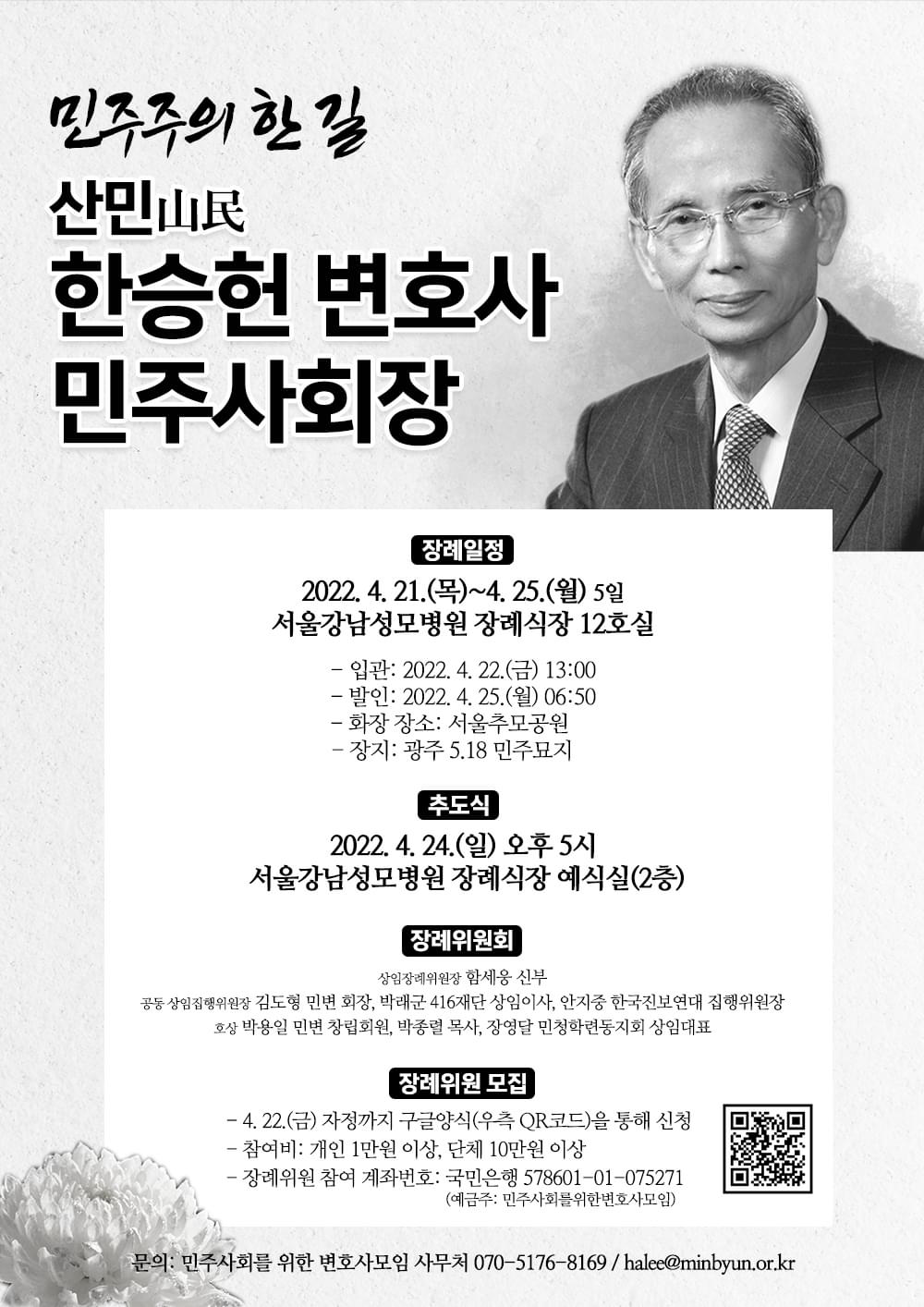 민주주의 한 길, 산민 한승헌 변호사 민주사회장